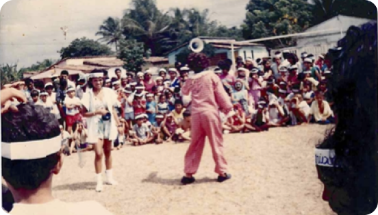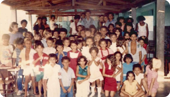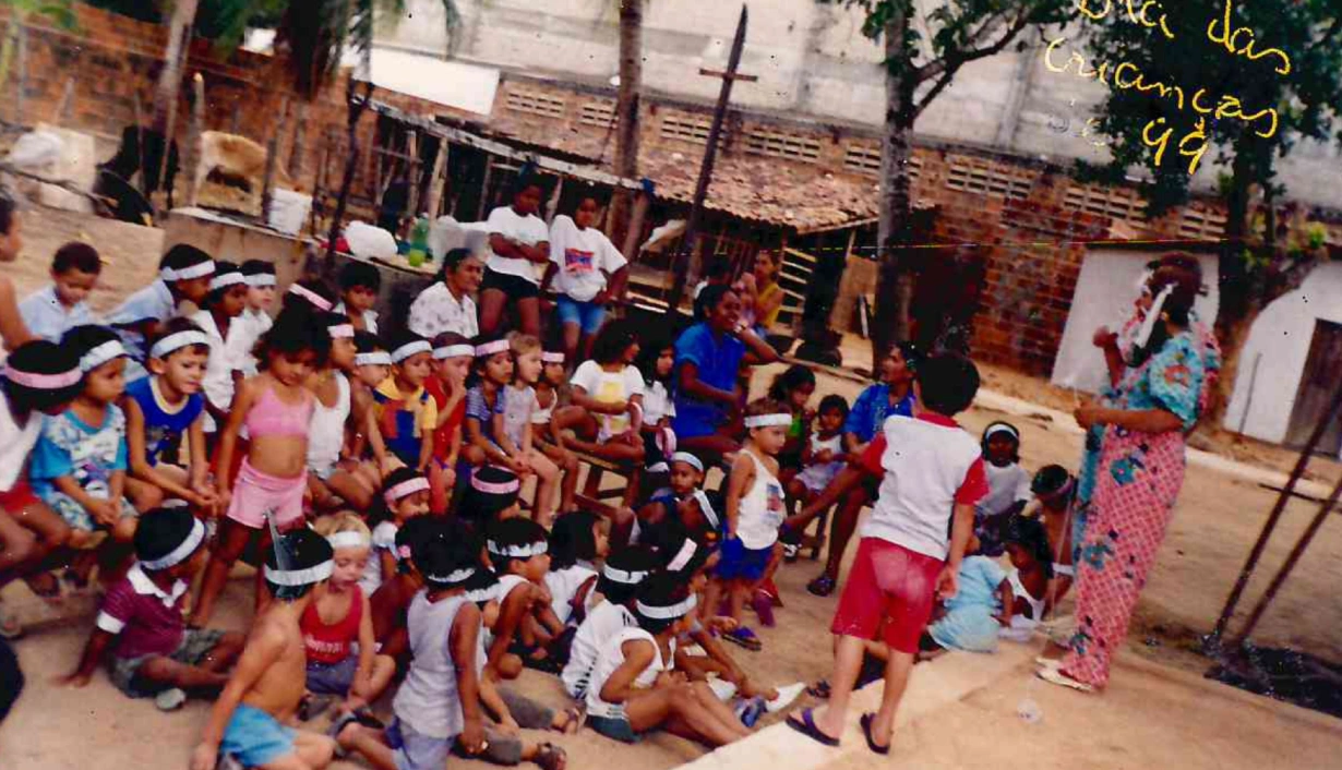 Por falta de escolas no bairro, a comunidade e as irmãs organizavam atividades, na década de 1980, com as crianças em locais diversos.